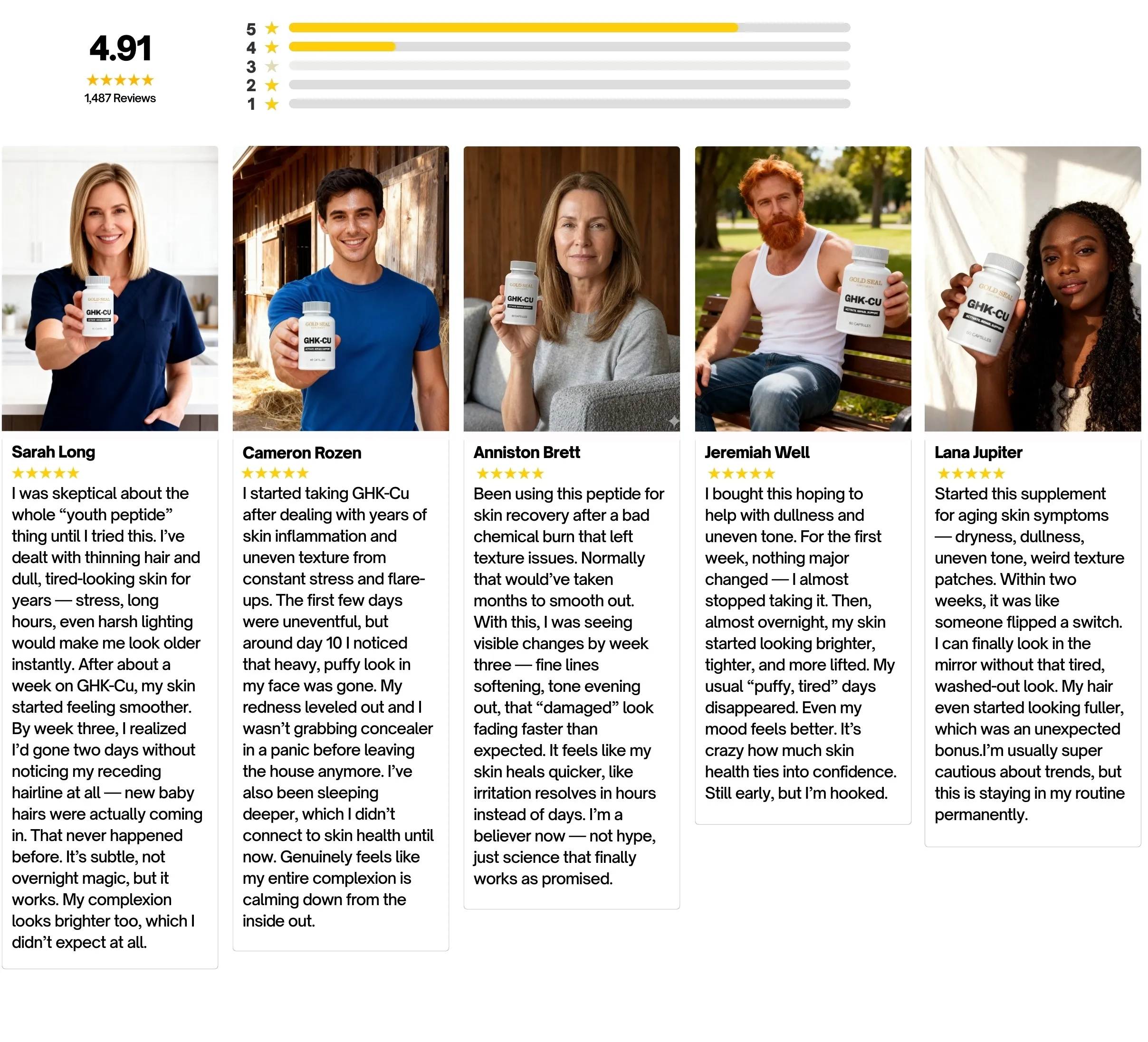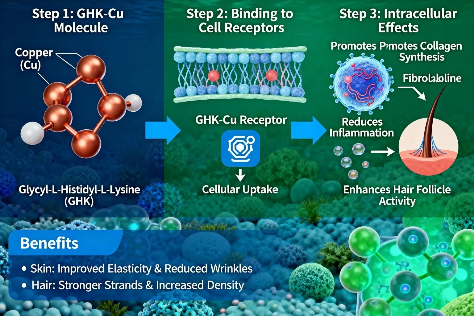 GHK-Cu rejuvenates skin by stimulating collagen, elastin, and glycosaminoglycan production — rebuilding structure from within. It improves firmness, smooths texture, reduces fine lines, and accelerates healthy tissue regeneration. Known for its ability to tighten skin, improve elasticity, and restore a youthful appearance.